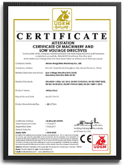 Besides, Hongji Mining also won various certificates issued by government organizations and many fund support, such as "Provincial Enterprise Abiding by Contract and Honoring credit" awarded by Henan administration for industry and commerce and Henan enterprise credit association, "Provincial Enterprise Abiding by Contract and Honoring Credit", " Exemption Enterprise" granted by the bank, "Chinese Patent Henan Star Enterprise" granted by Henan provincial science and technology department and Henan provincial intellectual property office, "Excellent Enterprise Integrating IT Application with Industrialization in Henan Province" "Superior Intellectual Property Enterprise of Henan province" and so on. These honors are the affirm of social and public, and also the approval of guests.