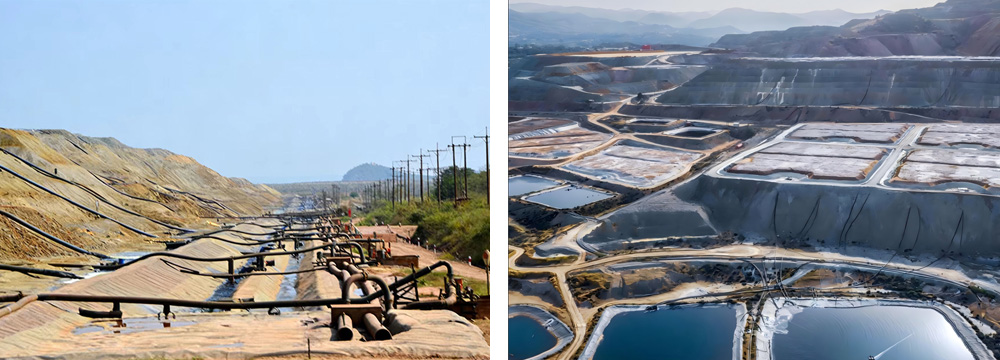Ore Placement: Low-grade ore (often containing less than 0.2% copper) is hauled directly from the open pit and deposited into large "dumps" or "stockpiles," sometimes reaching hundreds of meters in height.